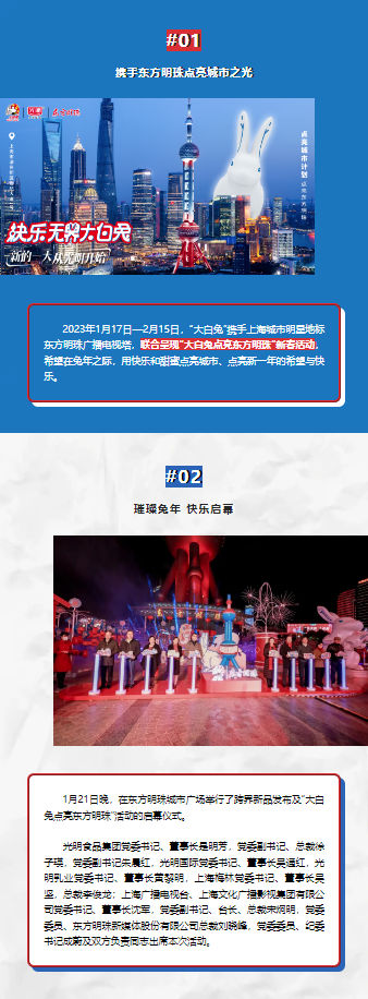 2023年1月17日——2月15日,“大白兔”攜手上海城市明星地標東方明珠廣播電視塔